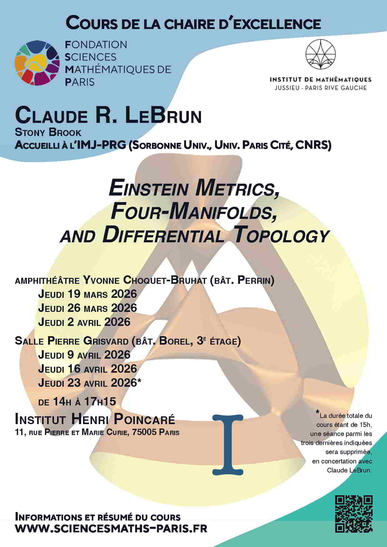 Institut Henri Poincaré, March 19 & 26, 2026.