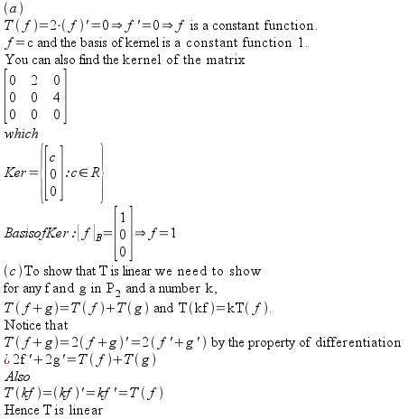 (d) But T is not an isomorphism because it is not 1-1 since Kernel has more than 0; .not only zero function but also all constant functions.